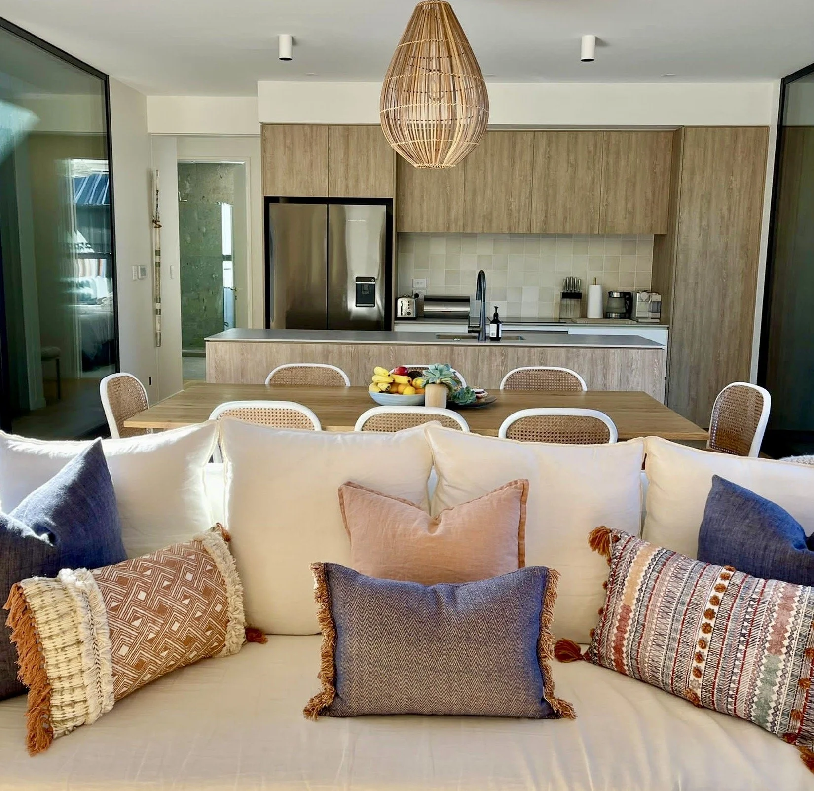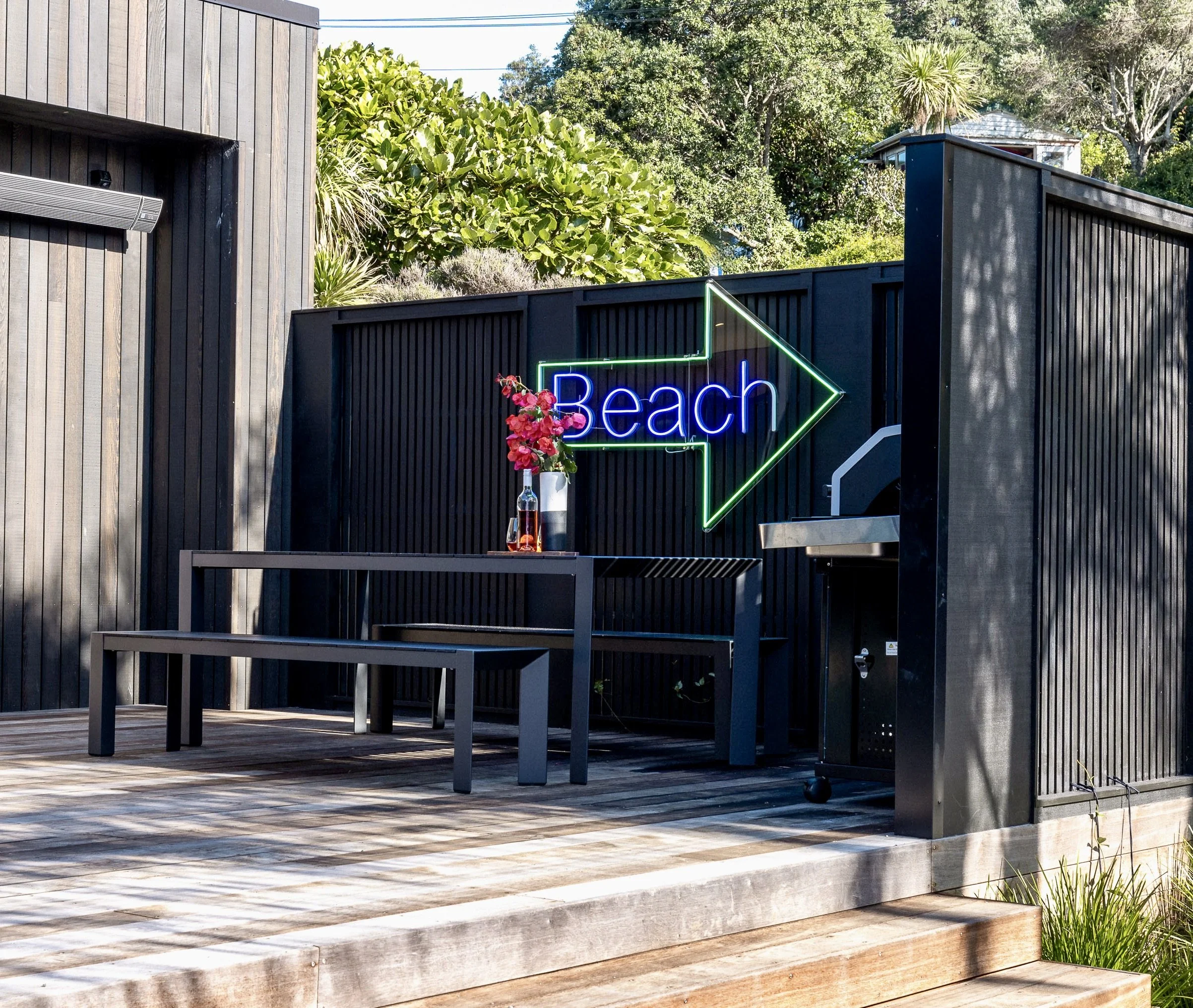 Stepping inside WAVESONG, is like entering a tropical oasis where every detail has been thought of to ensure guests enjoy the ultimate beach escape. The gorgeous interiors are light and fresh – everything is brand new – with hotel quality Sealy beds, crisp linen, modern beach vibe furniture and a fabulous NZ art collection.